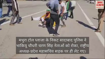 VIDEO : मथुरा टोल प्लाजा के निकट सादाबाद पुलिस ने भाकियू चौधरी चरण सिंह नेताओं को रोका, राष्ट्रीय अध्यक्ष-प्रदेश महासचिव सड़क पर ही लेट गए