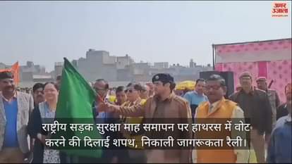VIDEO : राष्ट्रीय सड़क सुरक्षा माह समापन पर हाथरस में वोट करने की दिलाई शपथ, निकाली जागरूकता रैली