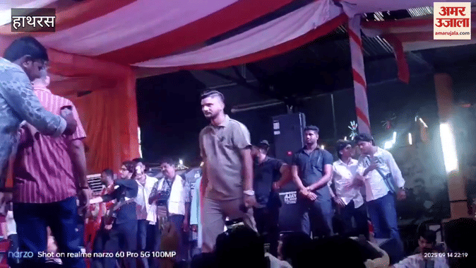 हाथरस के मेला श्री दाऊजी महराज के पंडाल में रविवार देर शाम भाजपा के विस्तारक अंकित गौड़ के संयोजन में पंजाबी दरबार का आयोजन किया जा रहा था। मंच पर कलाकार एंडी जाट ने प्रस्तुति दी।