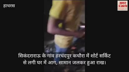 VIDEO : सिकंदराराऊ के गांव हरचंदपुर कचौरा में शोर्ट सर्किट से लगी घर में आग, सामान जलकर हुआ राख