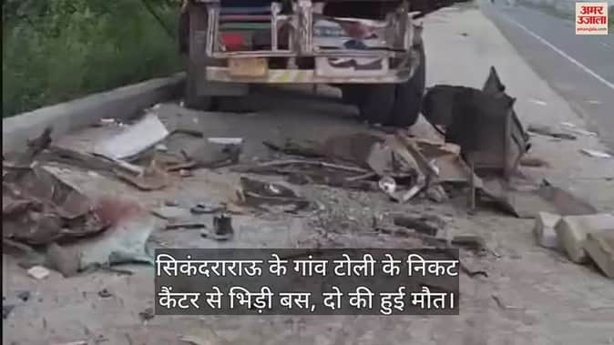 VIDEO : सिकंदराराऊ के गांव टोली के निकट कैंटर से भिड़ी बस, दो की हुई मौत