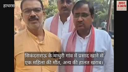 हाथरस के गांव माधुरी में मंदिर पर चढ़ाए गए प्रसाद को खाकर बच्चों, महिलाओं और पुरुषों की हालत बिगड़ गई। जिससे एक महिला की मौत हो गई। हालत खराब होने पर कुछ का इलाज सामुदायिक स्वास्थ्य केंद्र पर चल रहा है तो कुछ आगरा रेफर कर दिए गए हैं।