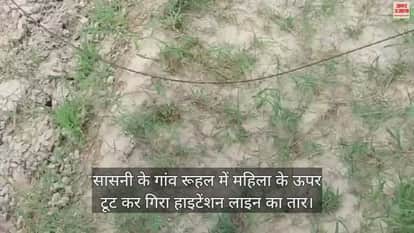 VIDEO : सासनी के गांव रूहल में महिला के ऊपर टूट कर गिरा हाइटेंशन लाइन का तार
