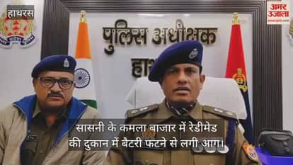 सासनी के कमला बाजार में रेडीमेड की दुकान में बैटरी फटने से लगी आग
