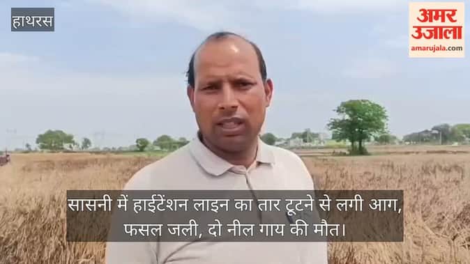 सासनी में हाईटेंशन लाइन का तार टूटने से लगी आग, फसल जली, दो नील गाय की मौत
