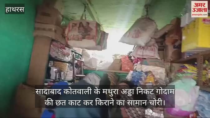 VIDEO : सादाबाद कोतवाली के मथुरा अड्डा निकट गोदाम की छत काट कर किराने का सामान चोरी