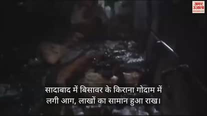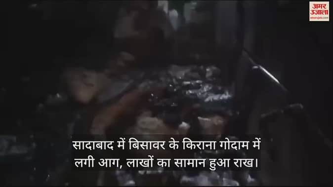 VIDEO : सादाबाद में बिसावर के किराना गोदाम में लगी आग, लाखों का सामान हुआ राख