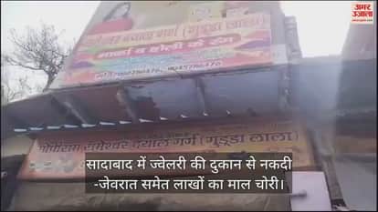 सादाबाद कस्बे के मुख्य बाजार स्थित ज्वेलरी दुकान में 15 मार्च की रात चोर नकदी और जेवरात चोरी कर ले गए। दुकानदार को घटना की जानकारी तब हुई, जब सुबह वह दुकान खोलने पहुंचे। घटना सीसीटीवी कैमरे में कैद हो गई है।