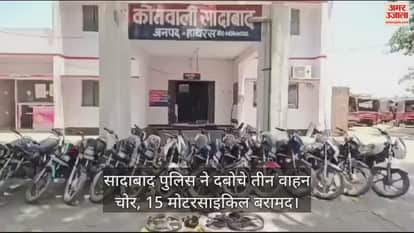 VIDEO : सादाबाद पुलिस ने दबोचे तीन वाहन चोर, 15 मोटरसाइकिल बरामद