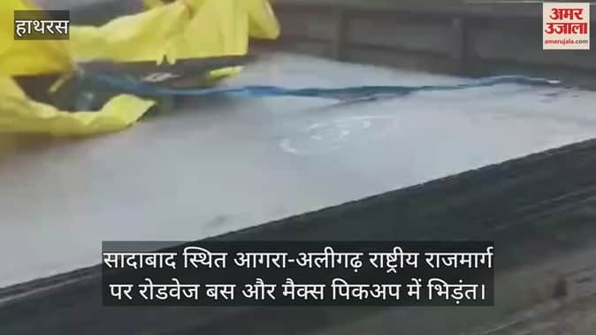 VIDEO : सादाबाद स्थित आगरा-अलीगढ़ राष्ट्रीय राजमार्ग पर रोडवेज बस और मैक्स पिकअप में भिड़ंत
