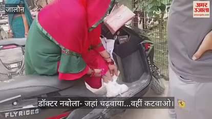 सीएचसी जालौन में डॉक्टर द्वारा प्लास्टर काटने से मना करने के बाद महिला को मजबूरी में स्कूटी पर बैठकर खुद कैंची से प्लास्टर हटाना पड़ा। इस लापरवाही का वीडियो सोशल मीडिया पर वायरल हो गया है।