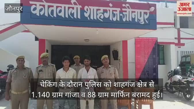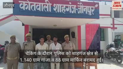 शाहगंज - क्षेत्र में चेकिंग के दौरान पुलिस ने गांजा व मार्फिन के साथ मंगलवार की सुबह दो अभियुक्त को गिरफ्तार कर चालान न्यायालय भेज दिया। प्रभारी निरीक्षक दीपेन्द्र सिंह के मुताबिक मंगलवार की सुबह क्षेत्र में भिन्न भिन्न स्थानों पर उपनिरीक्षक मुन्नालाल शर्मा व उपनिरीक्षक आनंद प्रजापति अपने हमराहियों के साथ वाहन चेकिंग कर रहे थे उसी दौरान मुखबिर खास से सूचना मिला की दो संदिग्ध युवक क्षेत्र में भ्रमण कर रहे हैं। मुखबिर खास की सूचना पर पहुंची पुलिस ने भिन्न भिन्न स्थानो से दो युवकों को पकडकर तलाशी लिया तो एक युवक के पास 1 किलो 140 ग्राम गांजा बरामद हुआ और दूसरे के पास से 88 ग्राम मार्फिन पावडर बरामद किया। कडाई से पूछताछ के दौरान उन लोगों ने अपना जुर्म कबूल करते हुए अपना नाम पता क्षेत्र के बडागांव निवासी रिजवान शेख उर्फ लम्बू पुत्र अब्दुल रउफ व उक्त गांव निवासी दूसरे ने अलीशाद उर्फ आसिफ पुत्र अनुसार कुरैशी बताया पुलिस ने दोनों को हिरासत में लेकर संबंधित धाराओं में मुकदमा पंजिकृत कर चालान न्यायालय भेज दिया।