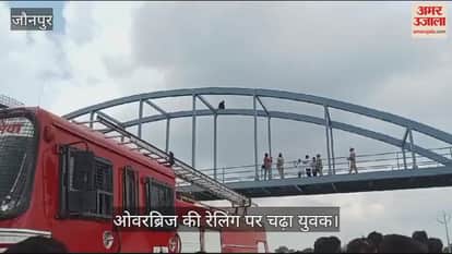 VIDEO : ओवरब्रिज की रेलिंग पर चढ़ा युवक, कूदने की दी धमकी, बच्चा चोरी के शक में ग्रामीणों ने दौड़ाया