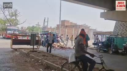 झांसी में सड़क पर पीने वालों की लगी भीड़, गाड़ी में लदी थी देसी शराब, हादसे में बिखरे टेट्रा पैक