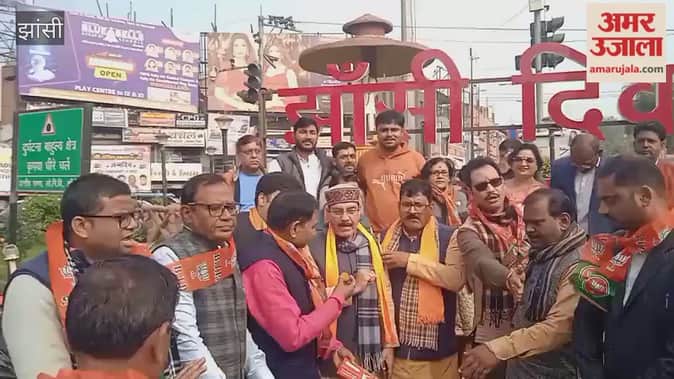 झांसी में केंद्रीय बजट को लेकर इलाइट चौराहे पर भाजपाइयों ने बांटी मिठाई