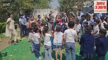 In Jhansi, children of Irim India School in Sipri Bazaar played Holi with flowers in the form of Radha Krishna.