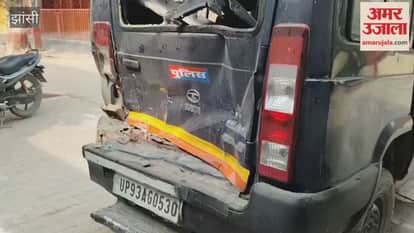झांसी: पुलिस वाहन में डंपर ने मारी जोरदार टक्कर, गाड़ी में पुलिसकर्मी न होने से टला बड़ा हादसा