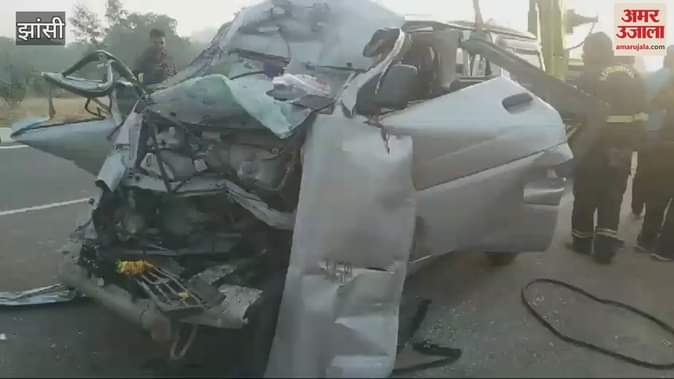 VIDEO : झांसी में दर्दनाक हादसा... खजुराहो हाईवे पर खड़े ट्रक से टकराई कार