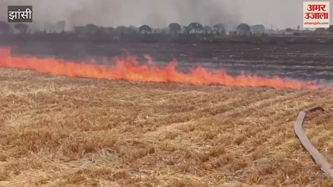 झांसी के समथर के मौजा चमराइमली, बहादुरपुर और दतावली में पराली में लगी आग, 300 से 400 बीघा खेती चपेट में