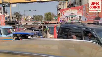 झांसी-ग्वालियर रोड पर बीकेडी चौराहे के पास लगा जाम, रेंगता रहा ट्रैफिक