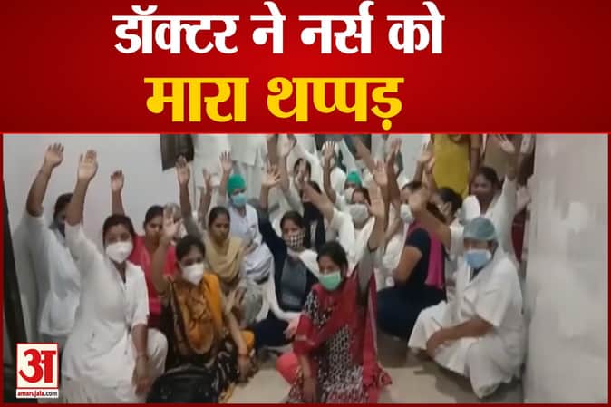 एमएलएन मेडिकल कॉलेज के एसआरएन अस्पताल में सोमवार शाम एक जूनियर डॉक्टर ने ड्यूटी पर तैनात स्टाफ नर्स को थप्पड़ जड़ दिया। पिटाई से नाराज नर्सों ने काम ठप कर एसआईसी कार्यालय का घेराव किया। आरोपी डॉक्टर को मौके पर बुलाने और सार्वजनिक रूप से माफी मंगवाने की मांग कर रहीं नर्सें करीब साढ़े तीन घंटे कार्रवाई की मांग पर अड़ी रहीं।