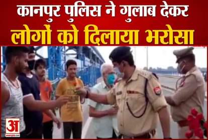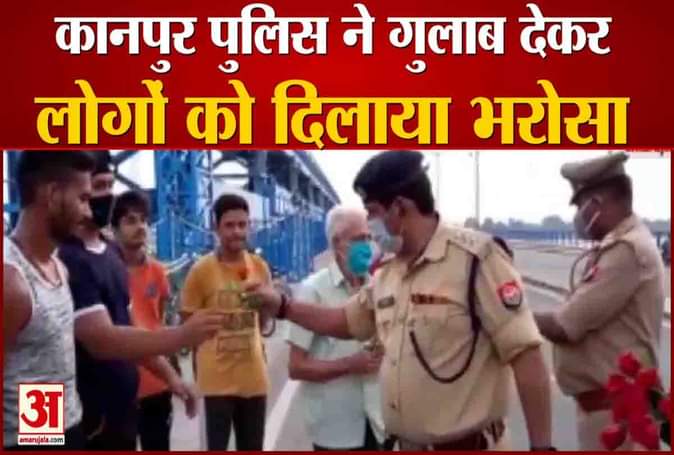 कानपुर में पुलिसकर्मियों ने गुलाब का फूल देकर सुरक्षा का दिया भरोसा