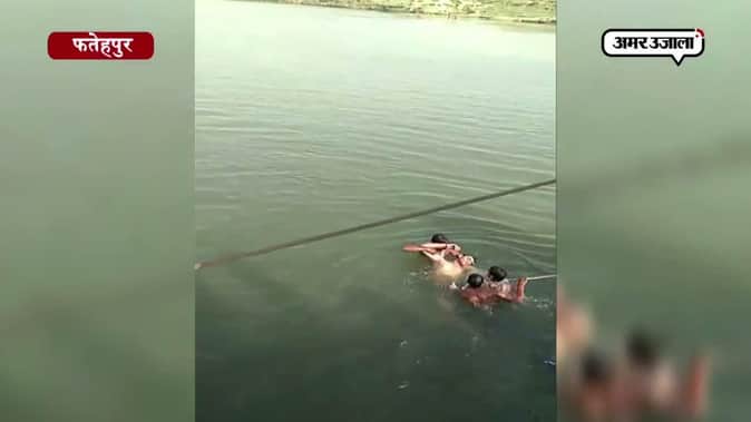 फतेहपुर में नदी में नहाने गए युवक के गले में रस्सी फंसने की वजह से उसकी मौत हो गई। वहां मौजूद लोगों ने नदी में कूदकर युवक को बचाने की पूरी कोशिश की लेकिन उसकी जान नहीं बचा पाए। आधे घंटे की कड़ी मशक्कत के बाद युवक की लाश को लोगों ने नदी से बाहर निकाला।