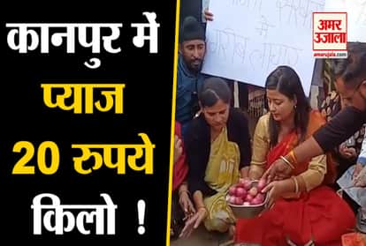 कानपुर में प्याज पर राजनीति, कांग्रेसियों ने चौराहे पर 20 रुपये किलो बेचा प्याज