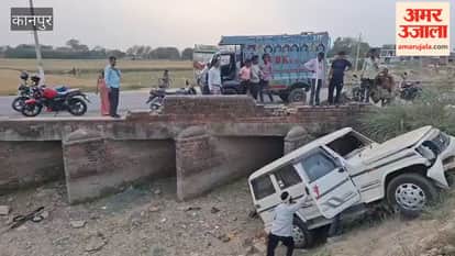 नेवादा मोड़ के बम्बे में घुसी बोलेरो, बाल-बाल बचे सवार तीन युवक