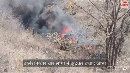 VIDEO : चित्रकूट में बोलेरो अनियंत्रित होकर झाड़ियों में गिरी, लगी आग