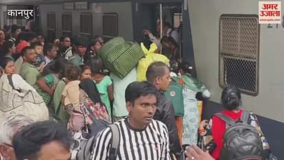 कानपुर सेंट्रल स्टेशन पर भैया दूज व छठ पूजा को लेकर ट्रेन में यात्रियों की भीड़