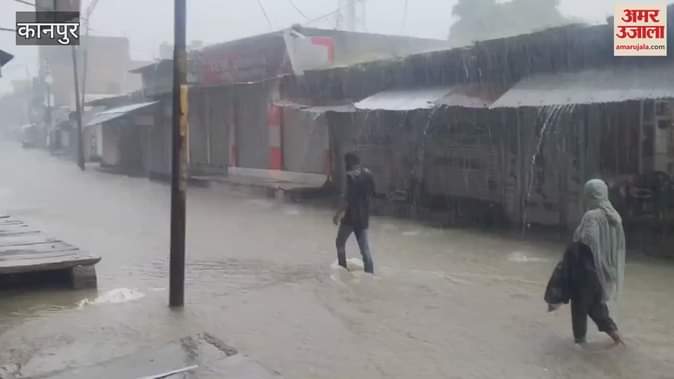 लगातार बारिश से सड़कों पर हुआ जलभराव, कस्बे के अंदर व सर्विस रोड पर भी भरा पानी