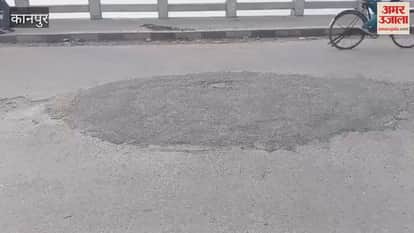 भारी वाहनों के निकलने के कारण नवीन गंगापुल पर फिर हुआ गड्ढा
