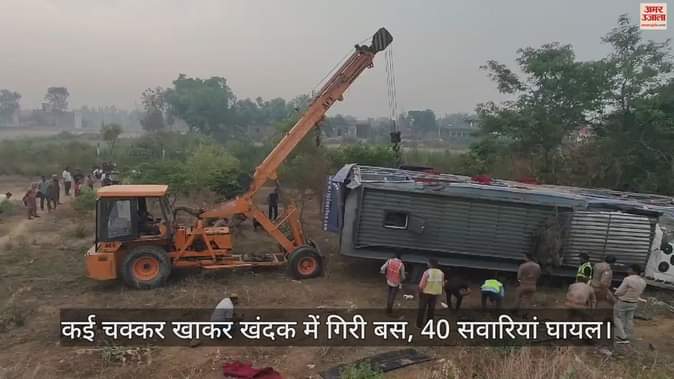 VIDEO : कन्नौज में एक्सप्रेसवे पर स्लीपर बस खंदक में गिरी, चालक को झपकी आने पर हुआ हादसा, 10 सवारियां घायल