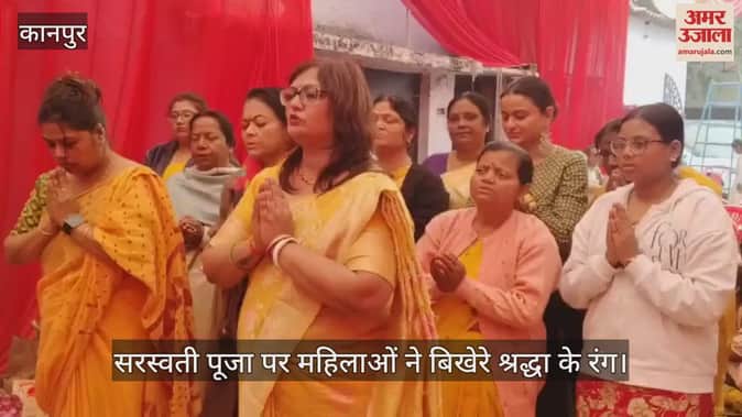कानपुर: बाबू पुरवा में बंगाली समाज की सरस्वती पूजा, मातृ शक्ति महिला कमेटी ने विधि-विधान से किया पूजन