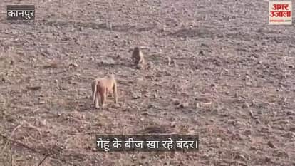 कानपुर: भीतरगांव के करचुलीपुर उमरा गांव में 200 से अधिक लालमुंह वाले बंदरों का आतंक