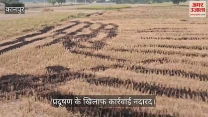 बिल्हौर तहसील क्षेत्र में धान की कटाई के बाद किसान कंबाइन मशीन से कटी फसल के पुआल को खेतों में खुलेआम जलाकर प्रदूषण फैला रहे हैं, जबकि सरकारी रोक के बावजूद अफसर इस पर कोई ध्यान नहीं दे रहे हैं।