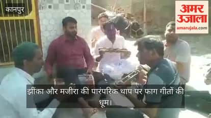 कानपुर: बरईगढ़ धाम में गूंजे फाग के स्वर, झींका-मजीरा की थाप पर भक्तों ने खेली होली