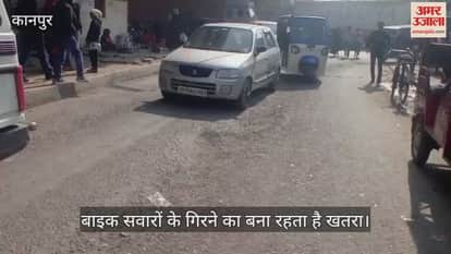 कानपुर: चौराहे पर गड्ढों और बिखरी बजरी ने बढ़ाईं मुश्किलें, जिम्मेदार मौन…आए दिन हो रहे हादसे