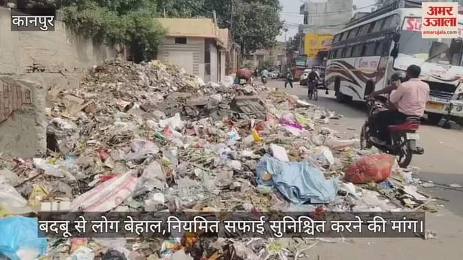 कानपुर: फजलगंज बस डिपो के सामने कूड़े का अंबार, सड़क तक फैली गंदगी से आवागमन ठप