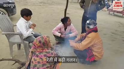 बिठूर में गंगा किनारे बर्फीली हवाओं और गलन ने ठिठुरन बढ़ा दी है। घाटों पर आने वाले श्रद्धालु और वहां रहने वाले लोग अलाव के सहारे ठंड से बचने की जद्दोजहद कर रहे हैं।