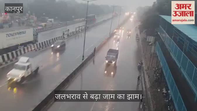 कानपुर: गुजैनी में मूसलाधार बरसात के बीच रेंगते रहे वाहन; हेडलाइट जलाकर सफर करने को मजबूर हुए चालक