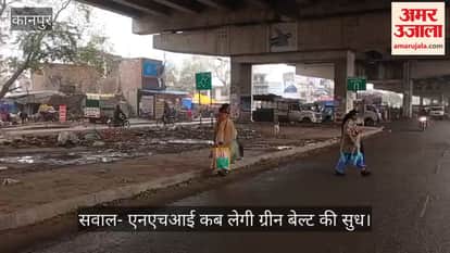कानपुर: हाईवे फ्लाईओवर की ग्रीन बेल्ट में फैला कचरा, आज तक नहीं दिखा है एक भी पौधा