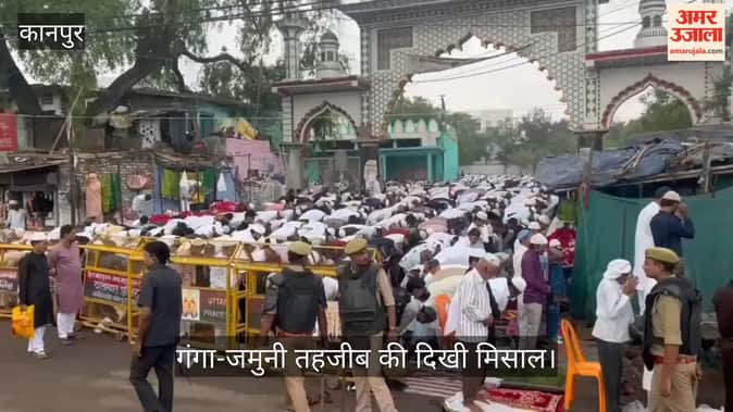 जाजमऊ की बड़ी ईदगाह में शनिवार को ईद की नमाज शांतिपूर्ण ढंग से संपन्न हुई। इस दौरान हिंदू और मुस्लिम भाइयों ने एक-दूसरे को गले लगाकर ईद की बधाई दी, जो शहर की गंगा-जमुनी तहजीब को दर्शाता है।