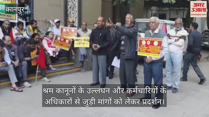 कानपुर के जीटी रोड स्थित राज्य श्रम आयुक्त कार्यालय पर बुधवार को विभिन्न केंद्रीय ट्रेड यूनियनों ने श्रमिकों के अधिकारों और मांगों को लेकर संयुक्त प्रदर्शन किया।