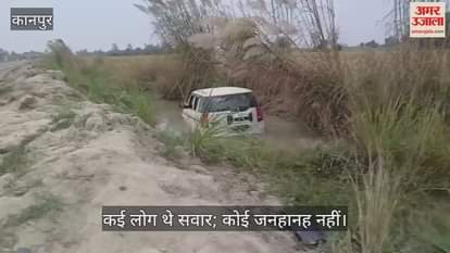 कानपुर के चौबेपुर में नीलगाय से टकराकर कार खाई में गिरी