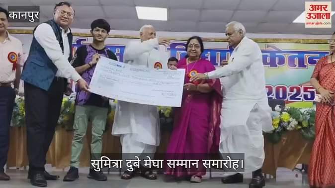 कानुपर के गुजैनी में सुमित्रा दुबे मेघा सम्मान, मंत्री बेबी रानी मौर्य व पूर्व सांसद सत्यदेव पचौरी ने छात्रों को किया सम्मानित