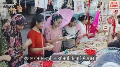 कानपुर में बारिश के बावजूद गोविंदनगर के बाजार में रक्षाबंधन की खरीदारी के लिए बहनों की भीड़ लगी थी। जब उनसे रक्षाबंधन से जुड़ी कहानियों के बारे में पूछा गया, तो एक नेहा ने इसकी पौराणिक कथा का सही जवाब दिया।