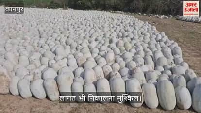 कानपुर: कुम्हड़ा का नहीं मिला सही भाव, किसानों ने खेत किनारे फल एकत्र किया