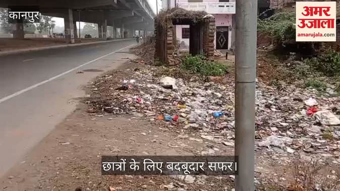 कानपुर: कोठी गांव के सामने कूड़े के ऊंचे ढेर, नामी शिक्षण संस्थान के छात्र बदबू के बीच सफर को मजबूर